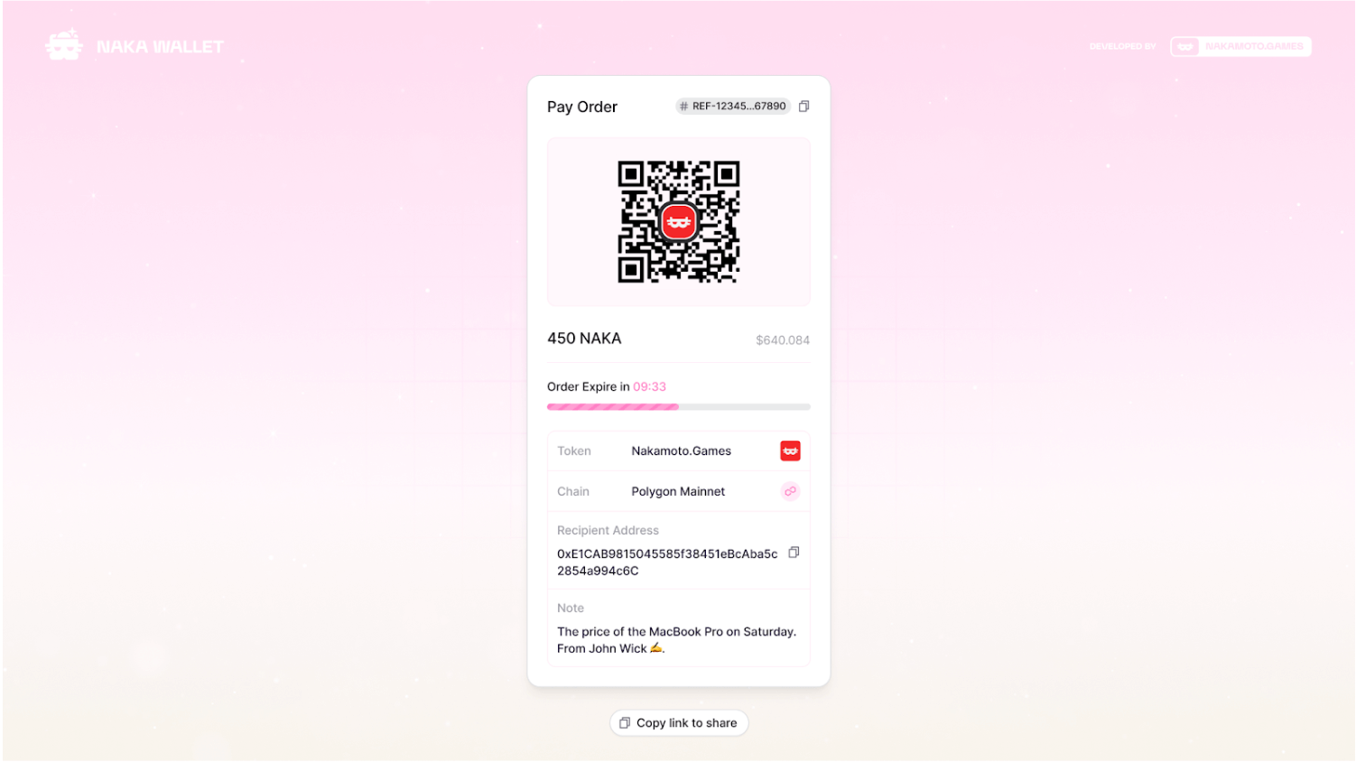 Step 4: Click the ‘View’ button to see the received token order page or the Share button to copy and send the order URL to others.